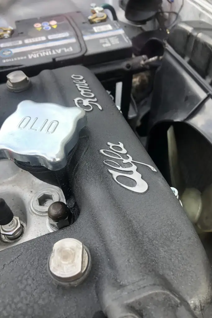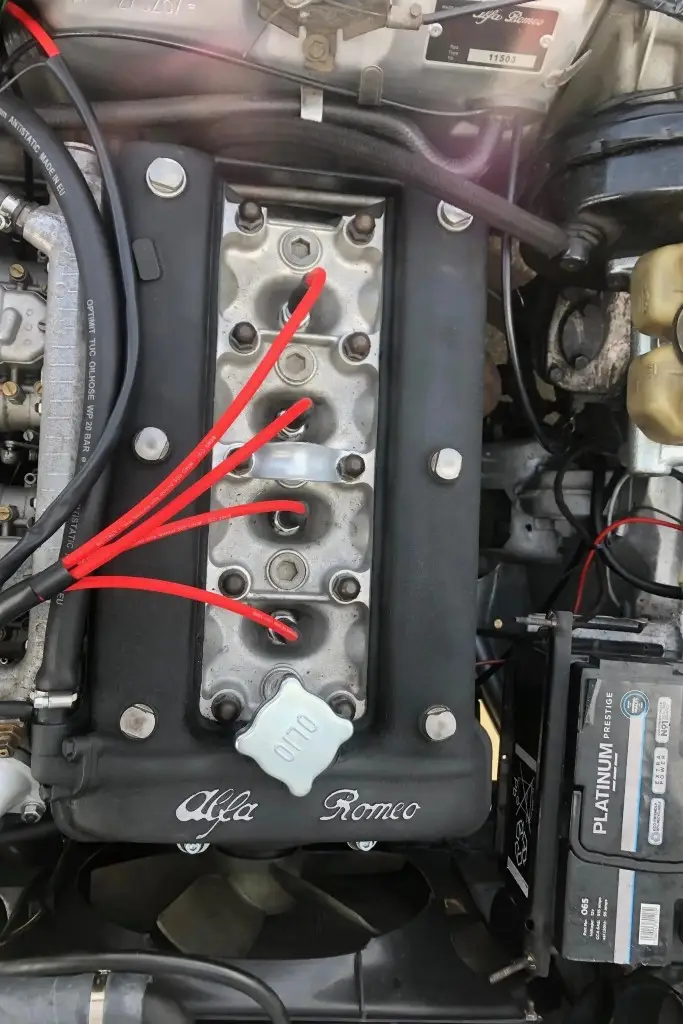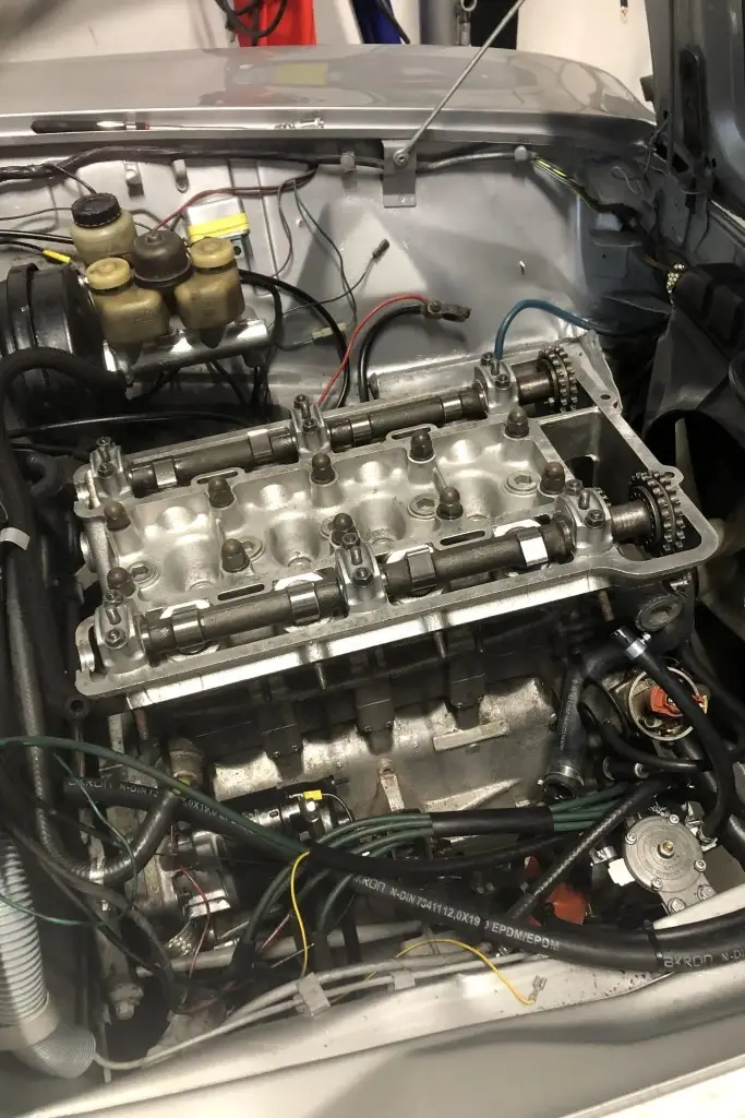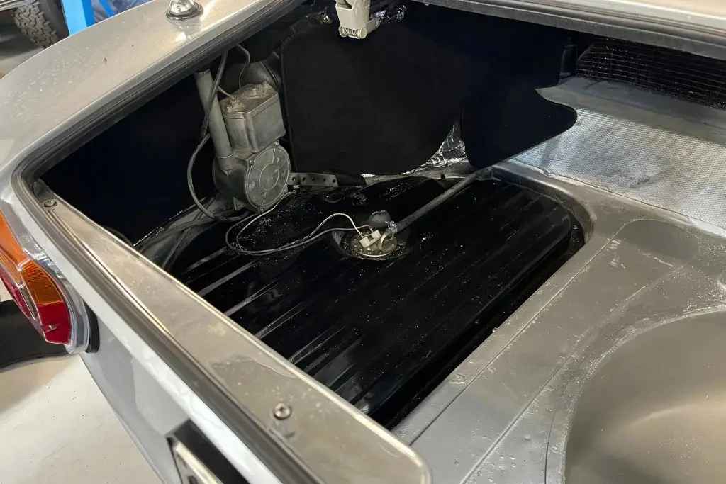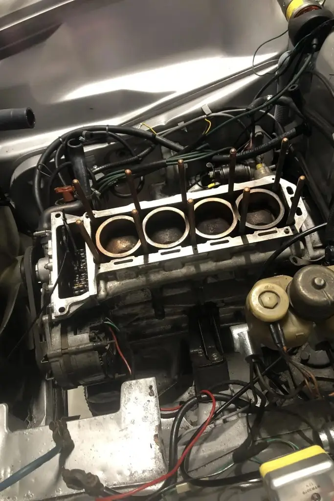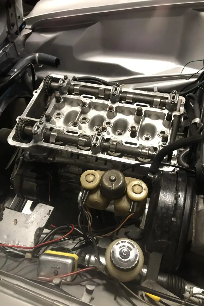 The twin-cam 1.6L inline-four was rebuilt and installed as part of the refurbishment and is equipped with dual Weber carburetors and a SACHS clutch assembly. The fuel tank was reportedly replaced during the engine swap.