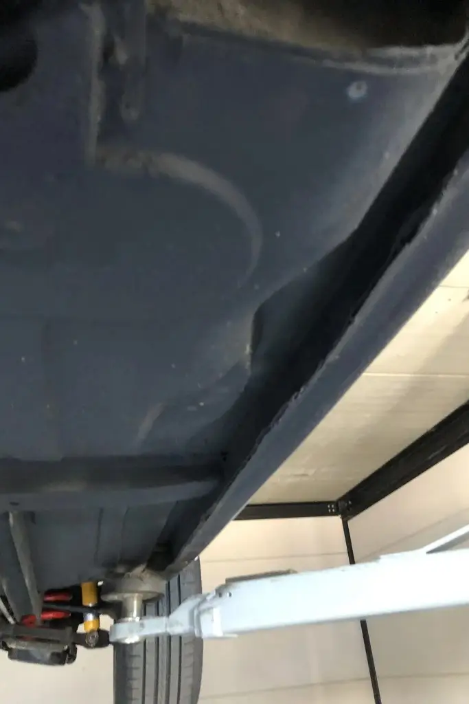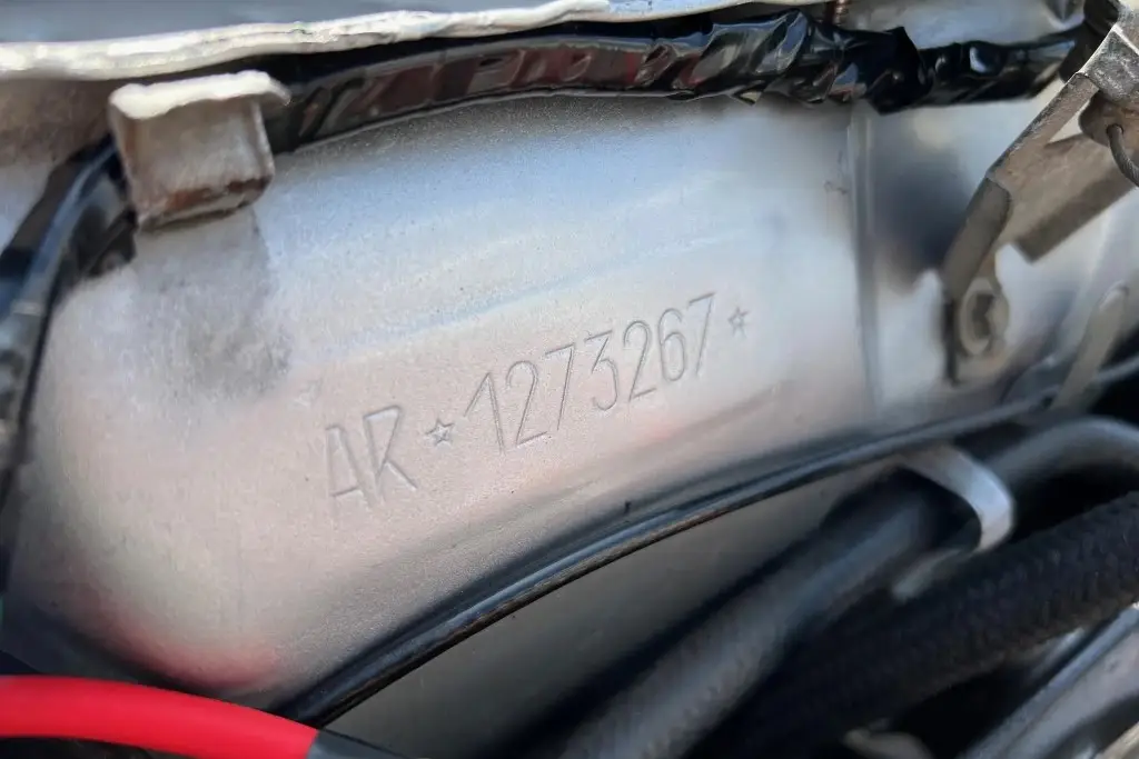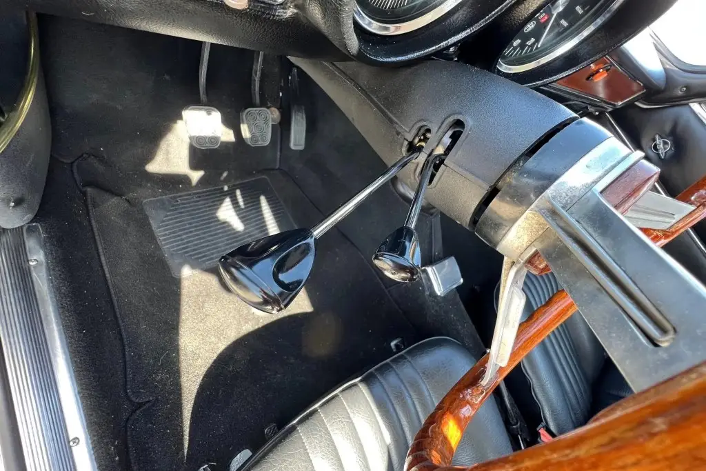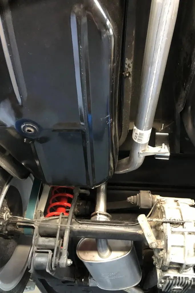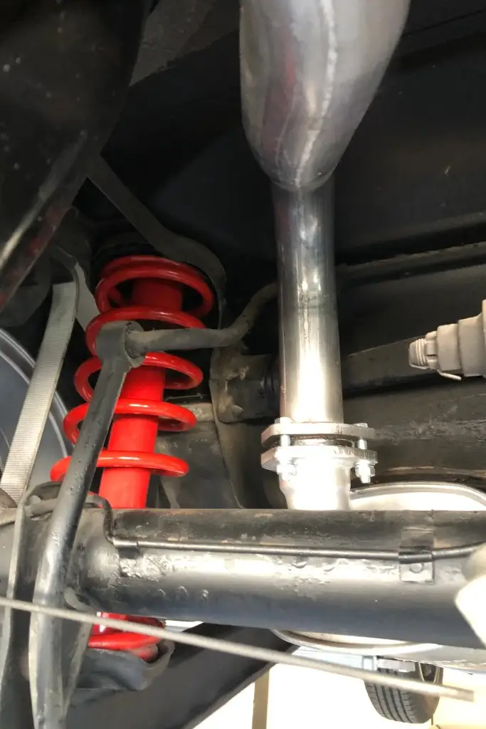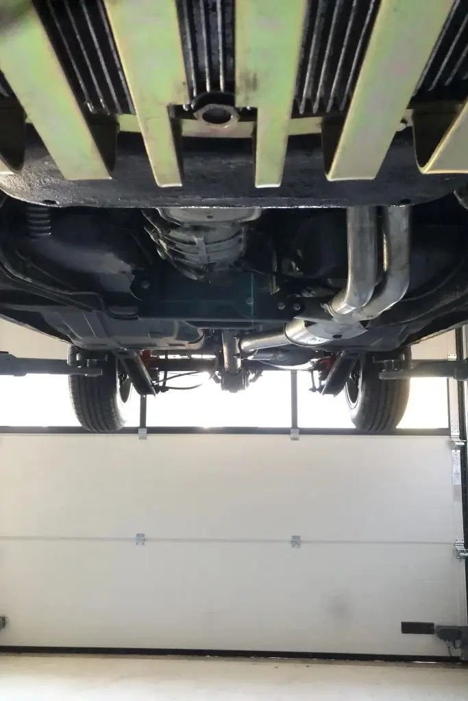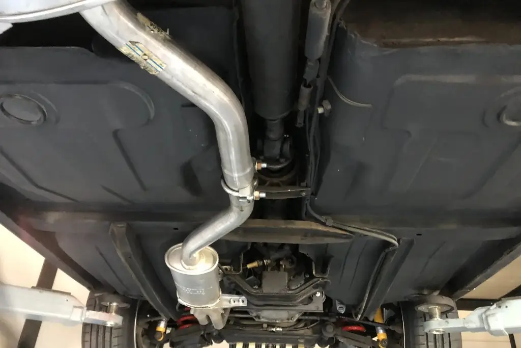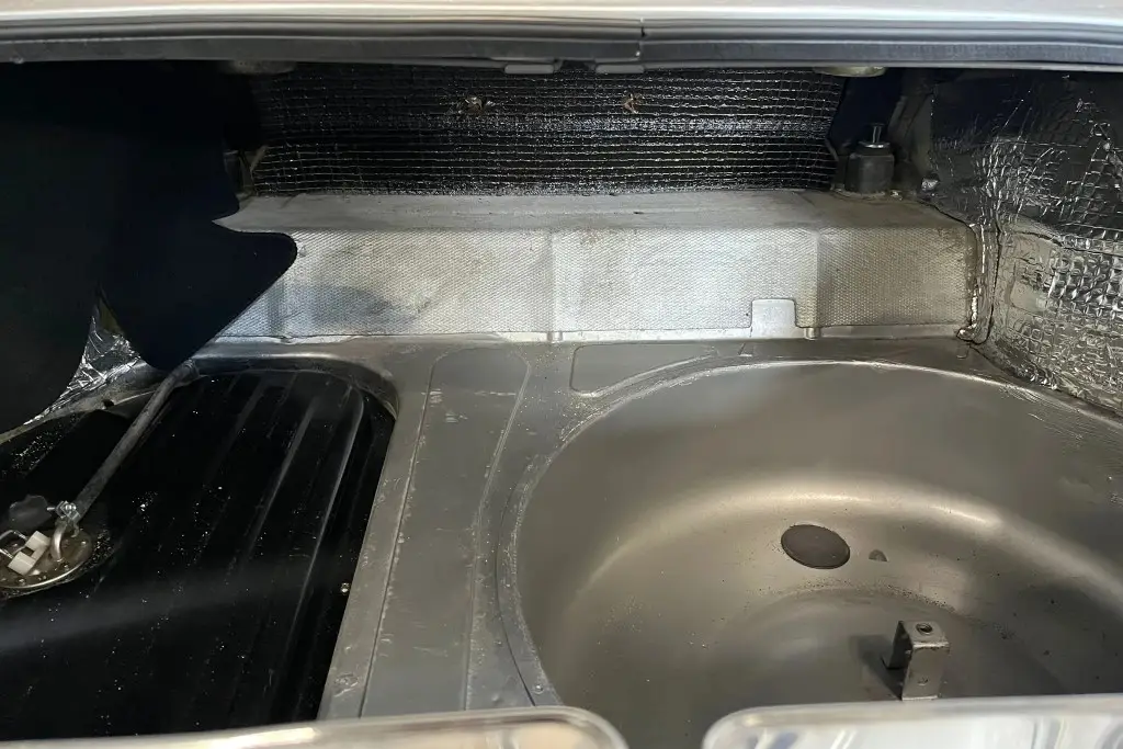 Power is sent to the rear wheels through a five-speed manual transmission. The underside has been refinished, and an Imasaf exhaust system is installed.