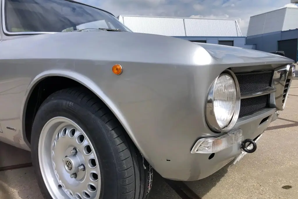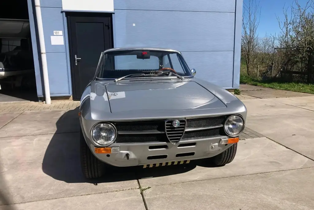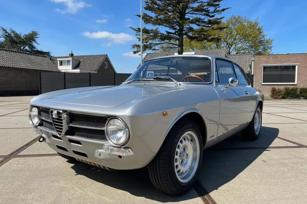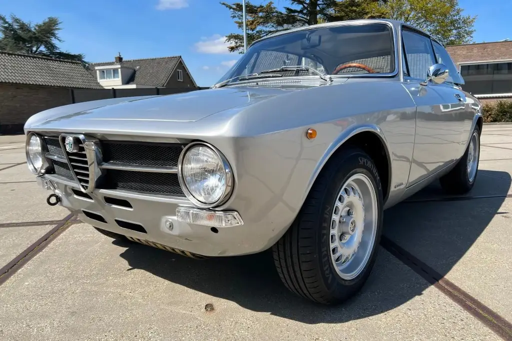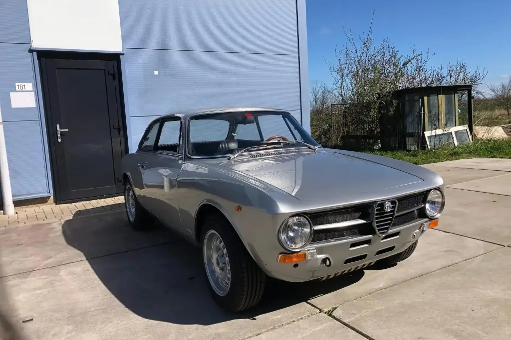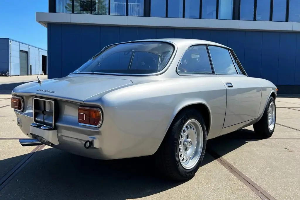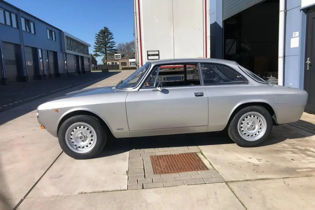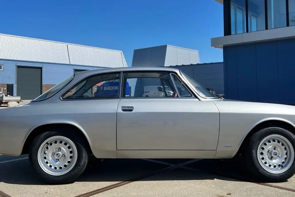 This 1972 Alfa Romeo GT 1300 Junior is a European-market example that is said to have spent much of its life in Italy before it was refurbished in the Netherlands in 2021 and subsequently acquired by the seller. Refurbishment work included repainting the car in silver and installing a twin-cam 1.6L inline-four, dual Weber carburetors, a SACHS clutch assembly, an Imasaf exhaust system, ATE front disc brakes, Koni shocks, and Arese lowering springs. Additional features include a five-speed manual transmission, front and rear tow hooks, GTA-style 15″ wheels, a Hellebore steering wheel, and a cabin heater.