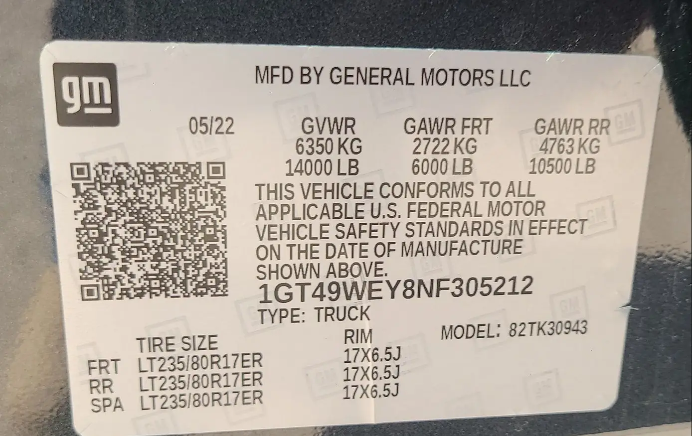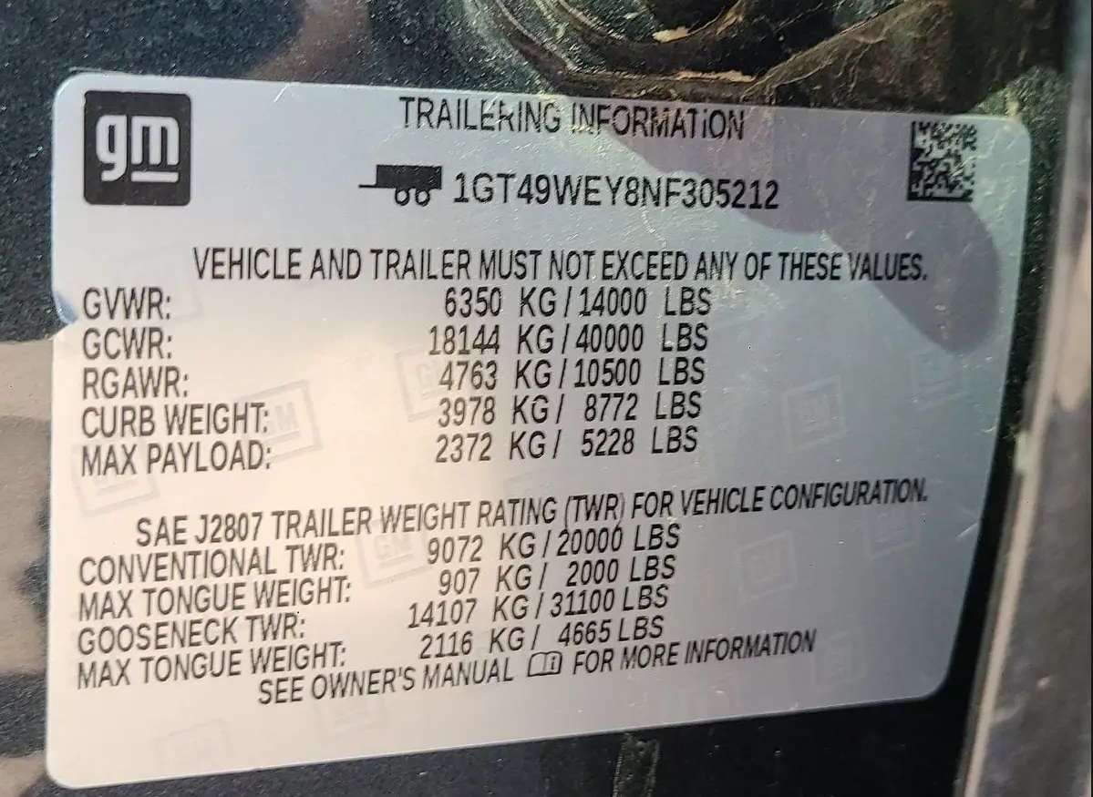 VIN: 1GT49WEY8NF305212